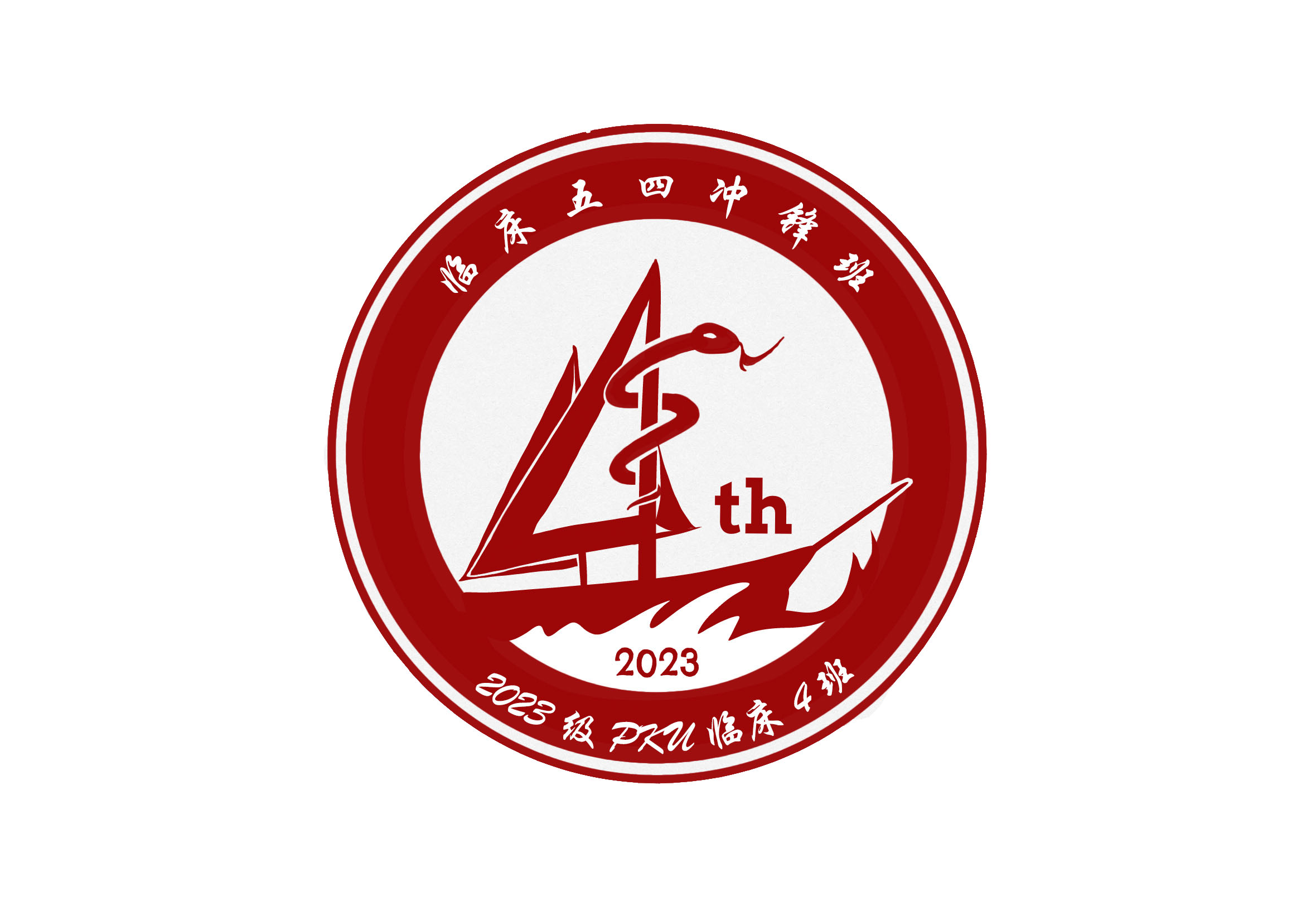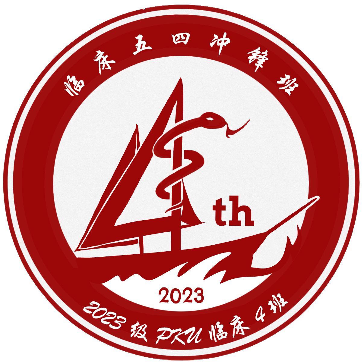 我们的班徽由王思明同学设计并绘制。灵蛇象征着健康长寿,而蛇杖则代表云游四方,治病救人。数字 “4” 形如船帆,我们在新的人生节点扬帆起航,在未来必将乘风破浪