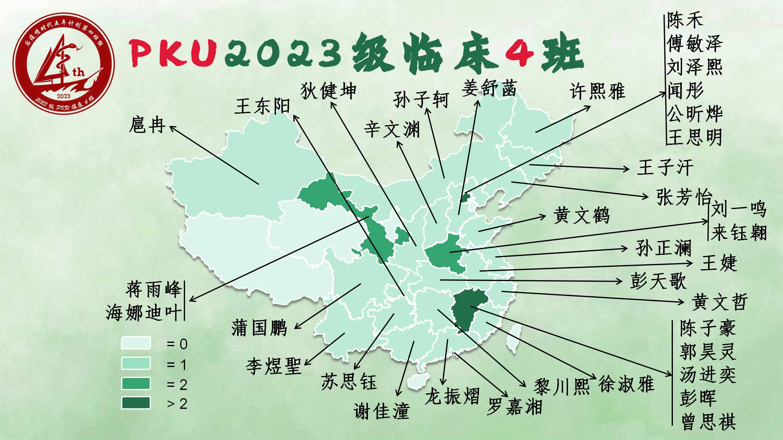 2023年8月19日,来自全国 27 个省与地区的 37 名同学在北京大学相遇,共同作为北京大学 2023 级临床四班的学生开始了宝贵的大学生活